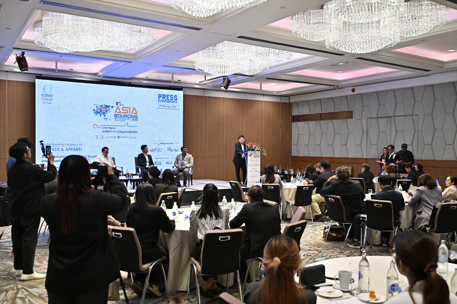 A Press Conference was successfully held on 11th February 2026, at the Westin Grande Sukhumvit, Bangkok, to officially announce CEMS-Global USA’s 2nd Asia Sourcing Show 2026 (Textiles & Apparel) and the Global Sourcing Summit 2026, scheduled to take place from 3 – 5 June 2026 at the IMPACT Exhibition & Convention Center, Bangkok.